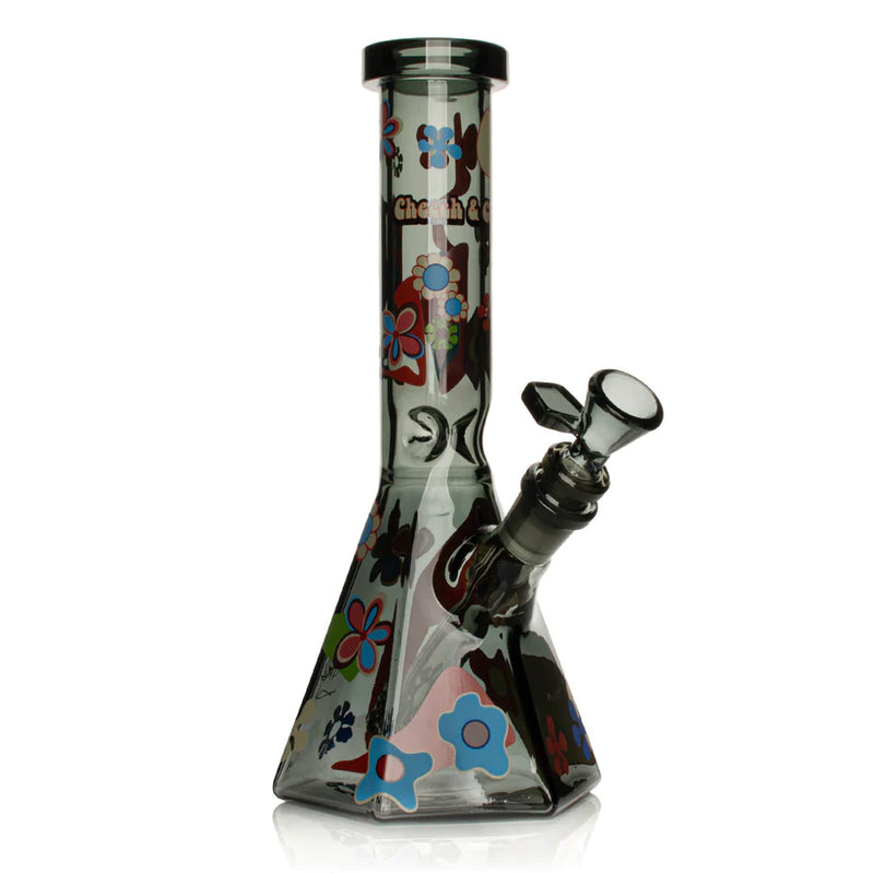 Hey man, are you ready to get groovy with your ganja? The Power to the Flower Hex Beaker Base Water Pipe features a classic '70s Cheech & Chong® Glass decal, a double-decker dual chamber design and a far-out hex-shaped chamber. Stay funky fresh and choose between crystal Clear or hazy Smoke for your next sesh.