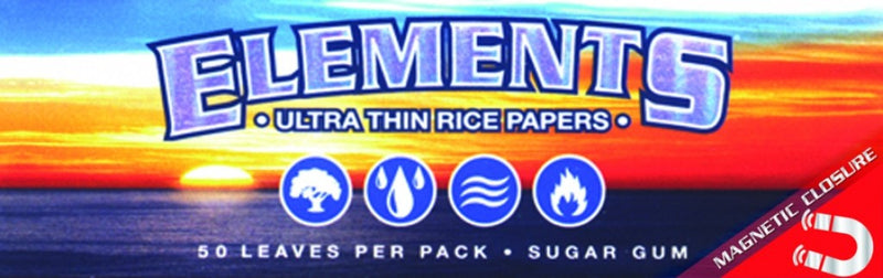 Elements are made from natural earth friendly materials like rice and sugar without the use of harsh chemicals or burn agents. They burn with virtually zero ash except for the natural sugar gum turning into caramel as it burns. The earthly result? The best rolling paper known to man.